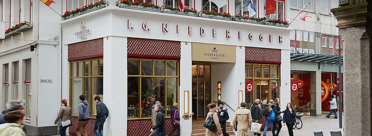 Das Café Niederegger ist eine Lübecker Institution. Im Jahre 1806 wurde es vom Konditormeister Johann Georg Niederegger gegründet. Er verhalf dem Unternehmen zu dem Ruhm, den das Niederegger Marzipan bis heute in der ganzen Welt genießt. In den nun 200 Jahren seines Bestehens ist das Café Niederegger im Herzen der Hansestadt zum heimlichen Wahrzeichen Lübecks geworden. Genießen Sie die einmalige Atmosphäre in unserem Stammhaus. Lassen Sie sich verwöhnen, ob beim Frühstück, zum Lunch, zur Kaffeestunde oder zum Dämmerschoppen.