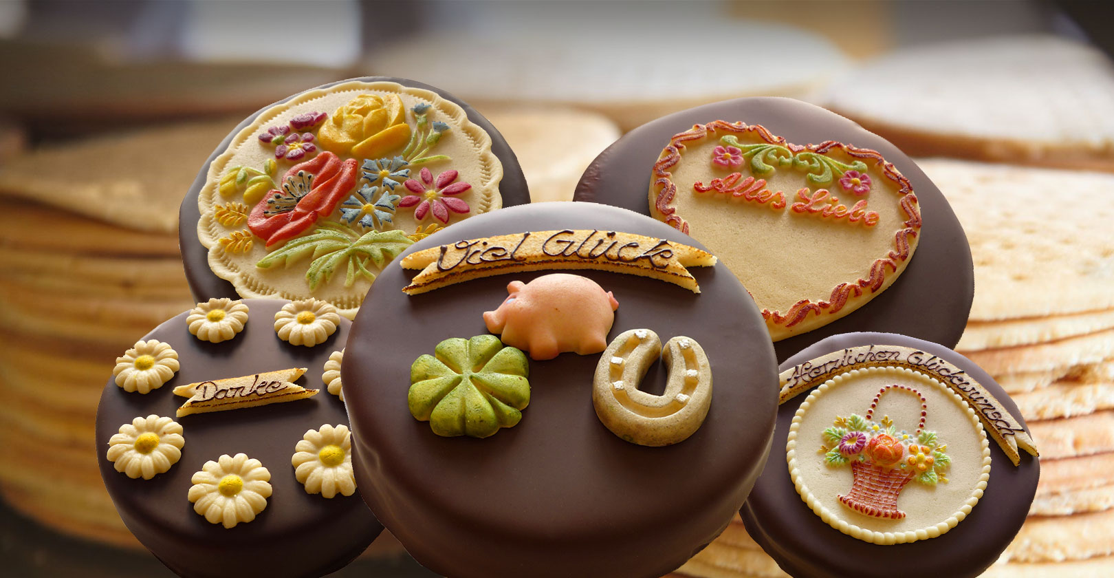 Mit handgefertigten Glückssymbolen.