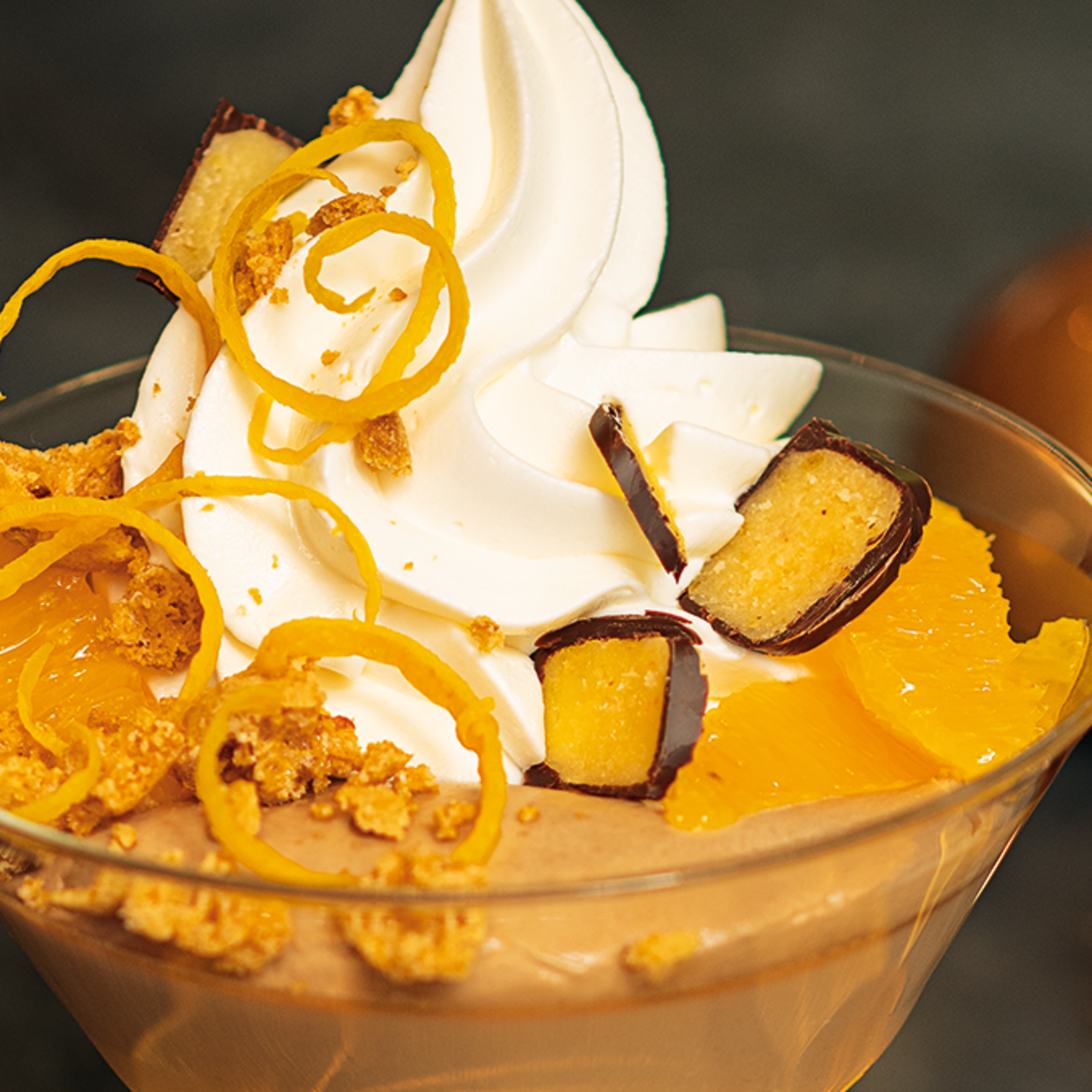 9. Mit frisch gehobeltem Marzipan, Orangenzesten und Amarettini-Bröseln garnieren.