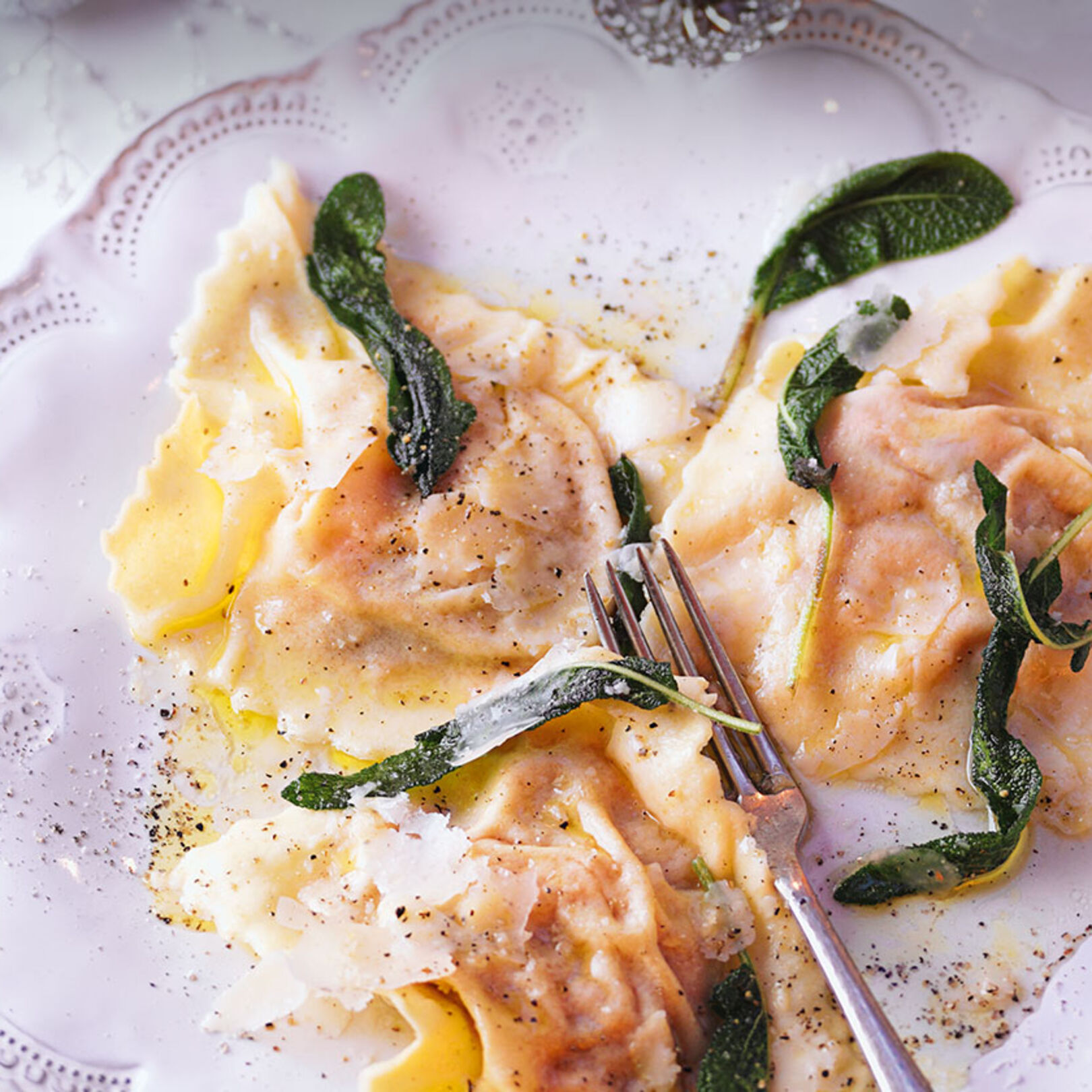 Marzipan Kürbisravioli in Salbeiteig