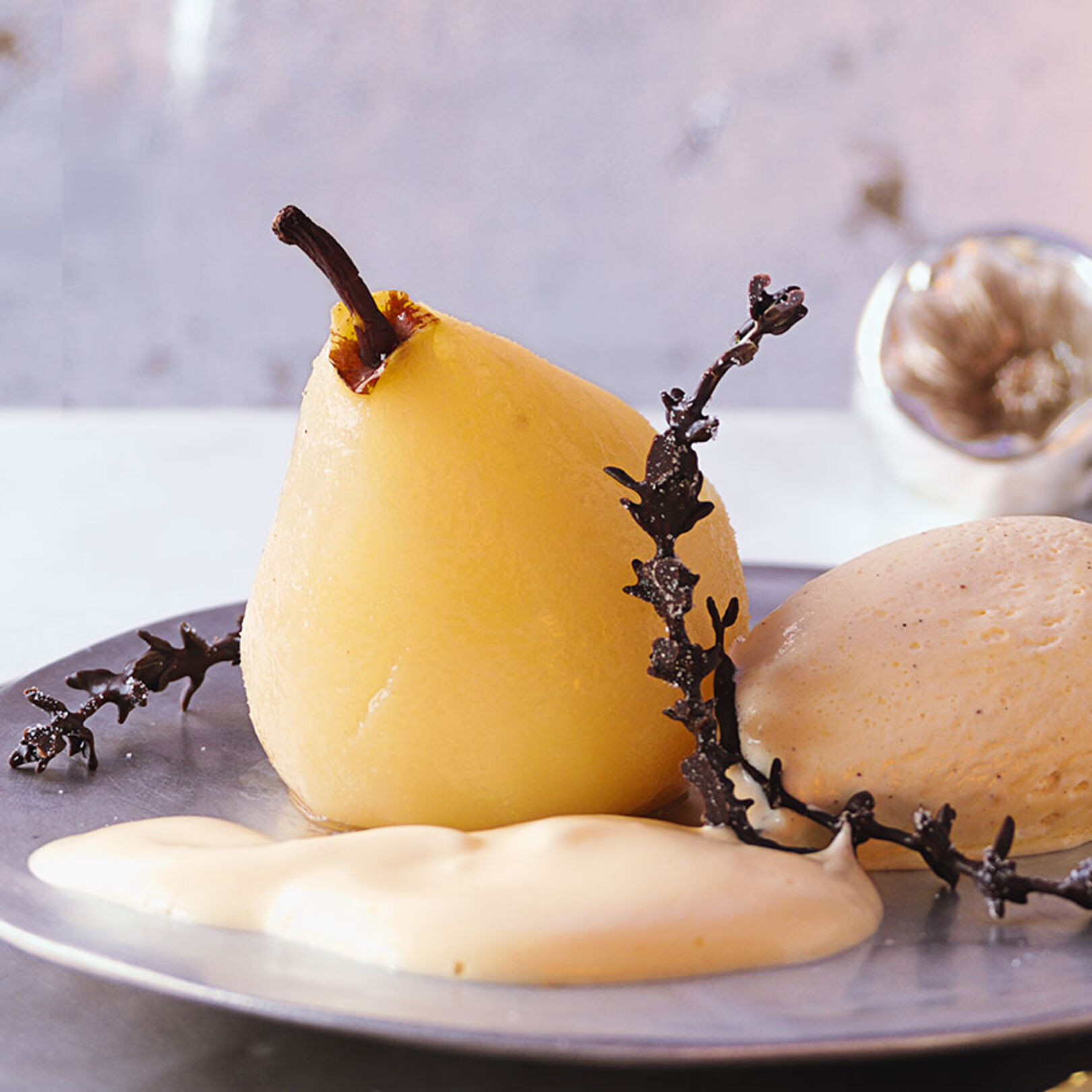 3. Die Birnen einzeln aus dem Backpapier nehmen und auf einen Teller setzen, mit der Zabaione angießen. Die restlichen Amarettini hineinbröseln und mit Eis servieren.